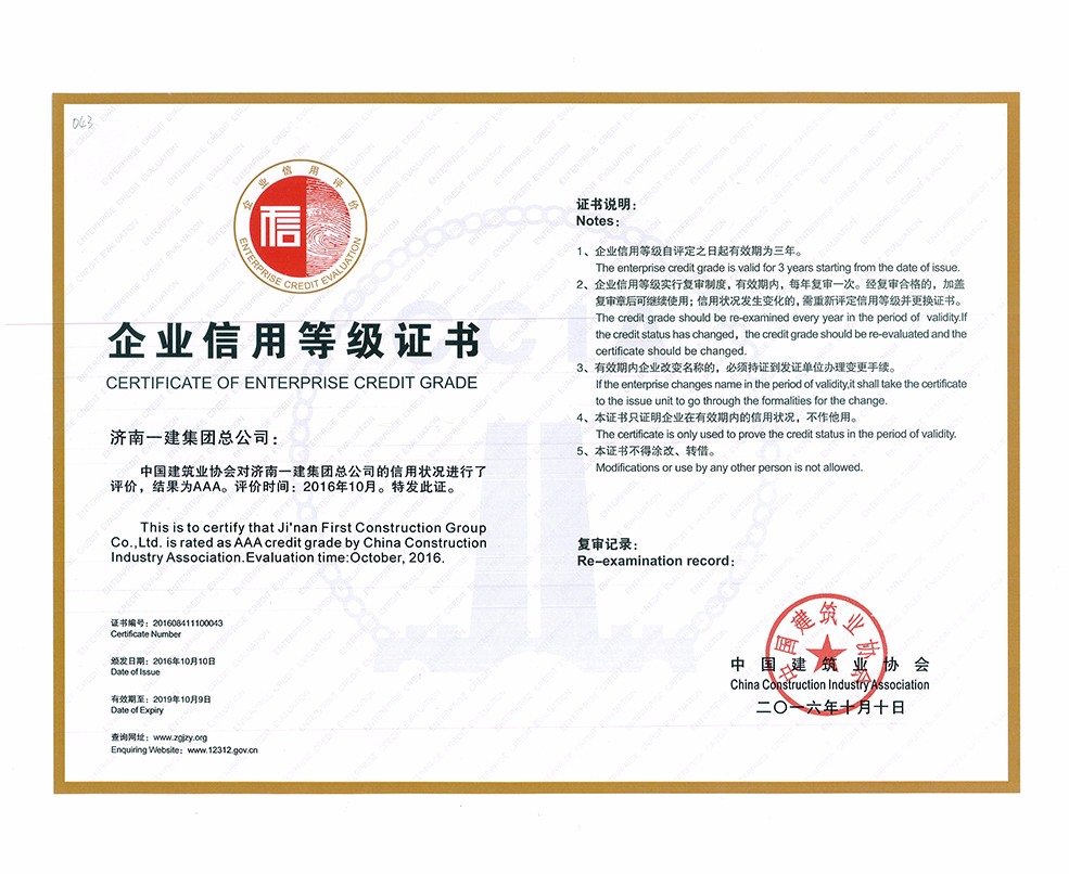 全國建筑業(yè)AAA級(jí)信用企業(yè)